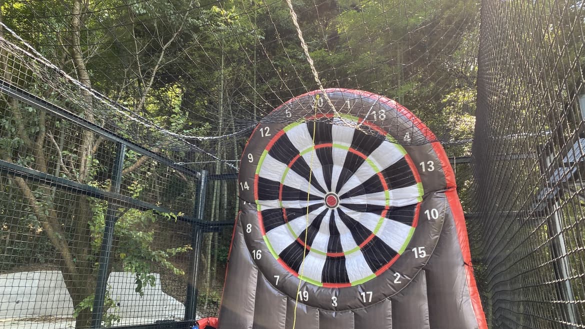 巨大なダーツボールに向かってジャンピングボレーシュート!キャプテン翼の世界を実体験できるアトラクションです。