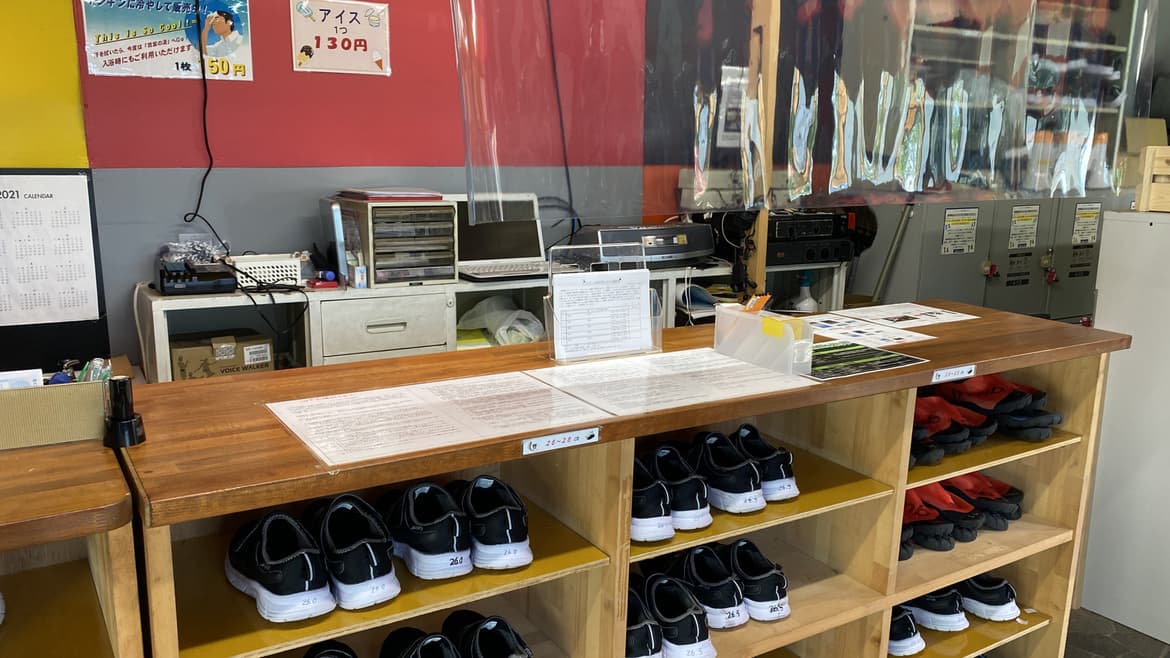 感染症予防のため上履きへの履き替え、手の消毒をお願いしております。利用時間を明記したリストバンドを着用いただいた上でご入場いただいております。尚、運動靴(スニーカー)でお越しのお客様はご自身の靴でご入場いただけます。(履き替え任意)